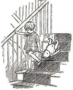 The book begins, “Here is Edward Bear, coming downstairs now, bump, bump, bump, on the back of his head, behind Christopher Robin. It is, as far as he knows, the only way of coming downstairs, but sometimes he feels that there really is a another way, if only he could stop bumping for a moment and think of it. And then he feels perhaps there isn’t.”