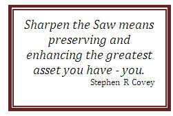 “Sharpen the Saw” is a Quadrant 2 activity (important but not urgent) requiring time, initiative and pro-activity. It makes all the other habits possible when we practice self-renewal and self-improvement in four areas.